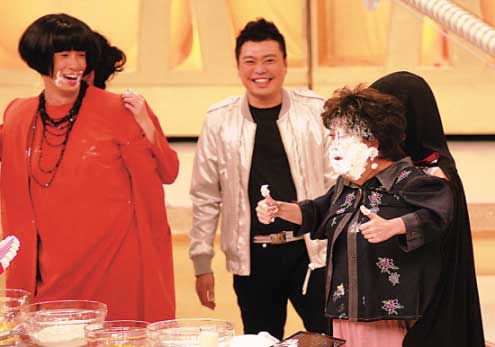 “荷媽”李司棋、“紅姨”米雪、“JO飽”夏雨、“SA姨”關(guān)菊英“冰釋前嫌”,一起為新餅店招募新員工,結(jié)果引來了曾志偉、陳豪等搗亂分子,曾志偉豪不留情地對(duì)他們大扔蛋糕,夏雨和關(guān)菊英都不幸“中招”,滿臉奶油,雖然狼狽,但也很“搶鏡”。