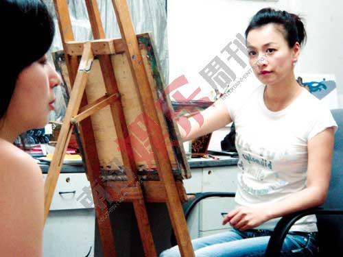 很快張庭就成為上師大美院的正式研究生,她那一屆只有她一個(gè)學(xué)生,專業(yè)是裝飾設(shè)計(jì),不過素描油畫是必修課。她常常一個(gè)人在畫室里畫人體模特,無人打擾,司機(jī)接送,滿身名牌,真的是這個(gè)學(xué)校里最高端的學(xué)生了。張庭每周三四天會定時(shí)練畫,8個(gè)小時(shí)不間斷,“表演是一種藝術(shù),它兼具理性和感性,我覺得美術(shù)跟表演是相通的!