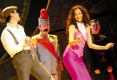 與瞿穎形成鮮明對比的是“赤壁大戰(zhàn)”中嗲聲嗲氣的小喬,嬌滴滴香港口音的她把曹操大人都帶得忘了普通話,只見赤壁大戰(zhàn)中的諸葛亮、周瑜等個(gè)個(gè)口音都像是西服革履的港商。(記者王菲)