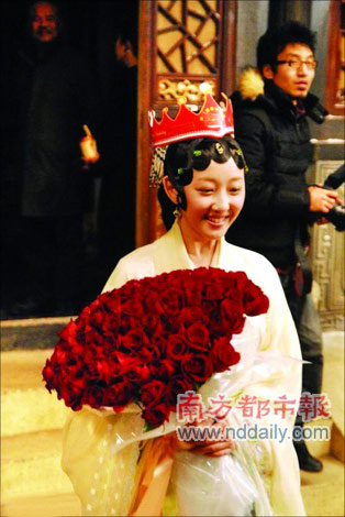 收到這么大一捧玫瑰,蔣夢(mèng)婕樂壞了。