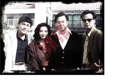 1991年拍攝《千王1991》期間,當(dāng)時(shí)主演(從左到右)梁朝偉、葉子楣、黃百鳴、任達(dá)華。