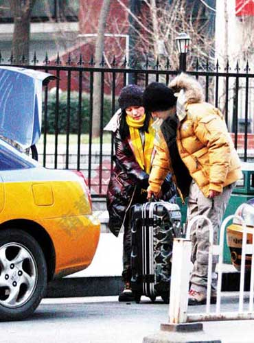第二天一早:7點20分,夏雨袁泉穿著厚重棉衣,拖著行李箱出門打車。
