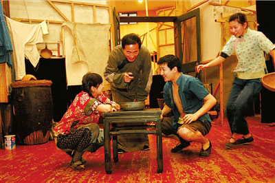 昨天,話劇《龍須溝》在北京人藝首次公開排練。楊立新飾演的“程瘋子”張嘴就是數(shù)來寶。楊立新說:“程瘋子是曲藝藝人,但是在前幾幕戲中他一直沒有唱,還要演出他的身份,因此很難演!睘榱怂茉旌眠@個(gè)角色,他此前還去了安定醫(yī)院體驗(yàn)生活。