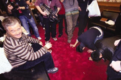 1月28日,北京,央視春節(jié)聯(lián)歡晚會(huì)在1月25日除夕夜舉行。零點(diǎn)鐘聲敲響后,與師傅成功搭檔表演小品《不差錢(qián)》的小沈陽(yáng)和眾徒弟按照東北習(xí)慣,跪地給師傅趙本山磕頭拜年。