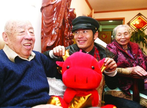 黃曉明的奶奶曾經(jīng)是廠里的領(lǐng)導(dǎo)干部,年事已高,但說起話來底氣很足,舉手投足間還透著領(lǐng)導(dǎo)風(fēng)范?吹接浾呓o她鞠躬拜年,她拉著記者的手說:“我年紀(jì)大了,行動(dòng)不方便,就不起身迎你了!”據(jù)黃曉明的家人介紹,黃曉明的爺爺、奶奶目前最大的心愿就是希望大孫子能盡快結(jié)婚抱上重孫子,“曉明的同學(xué)很多都當(dāng)上爸爸、媽媽了,他爺爺、奶奶每次看報(bào)紙,一發(fā)現(xiàn)孫子和誰誰傳出緋聞,就會(huì)對黃曉明的媽媽說,‘這個(gè)姑娘多好!是不是快結(jié)婚了?怎么也不告訴我一聲!’”黃曉明在一旁補(bǔ)充說:“要不是你先表明了記者的身份,我奶奶沒準(zhǔn)還真能把你當(dāng)成我?guī)Щ貋淼呐笥眩 ?/p>