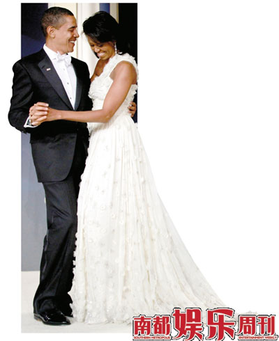 巴拉克·奧巴馬競選的時候,紐約時尚圈競相投靠奧巴馬的名人風頭,他和他的夫人早在去年就雙雙被評為《名利場》雜志年度最佳著裝人士。米歇爾1月21 日晚間出席華盛頓會議中心的舞會時的禮服,是一襲白色雪紡曳地長裙,操刀這襲晚禮服的是華裔設計師吳季剛(Jason Wu),年僅26歲,臺北出生,并不出名的他從米歇爾身上展現了自己的才華,同時讓米歇爾贏得了全世界的喝彩。她領跳第一支舞前,奧巴馬還向嘉賓打趣說:“第一件事,我太太漂亮嗎?”迅速惹來全場歡呼。兩人的時尚風頭,一時無兩。