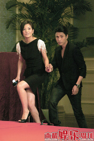 而陳坤也不讓搶鏡的趙薇專美于前,他豪氣派發(fā)數(shù)十封紅包給現(xiàn)場(chǎng)記者當(dāng)作年后開工的開門利是,令到現(xiàn)場(chǎng)一片歡騰。由于開機(jī)當(dāng)天正臨近情人節(jié),記者紛紛要求趙薇和陳坤這對(duì)銀幕情侶攜手?jǐn)[拍幾張親密愛人的pose,二人也十分配合,發(fā)布會(huì)上也很是投入地“演出”情侶間的拌嘴畫面,陳坤先爆自己不喜歡趙薇這一類型的,因?yàn)椤八腥藲饬恕,趙薇則回嘴自己“其實(shí)一直很有女人味,都是被陳坤亂造謠把名聲搞壞了!庇杏浾哐垡娙绱藲夥,便趁熱打鐵地詢問兩人是否有發(fā)展可能,沒料到氣氛一下子降至冰點(diǎn),向來感情生活神秘的陳坤臉色突變,干脆別過頭去,不予回答,最后還是趙薇化解了尷尬場(chǎng)面,她有些嚴(yán)肅地說:“我倆各自都挺多人追的,就還是別在一起給其他人一些機(jī)會(huì)吧。”