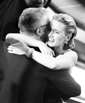 在紅毯上,凱特一襲灰藍色的曳地長裙,顯得從容雅致。但面對記者的提問,她卻坦言自己非常緊張:“我的父母也來為我助威了,可我還是非常緊張。其實我的腿在裙子里一直顫抖,只是裙子太長你看不到而已!眲P特開玩笑地說。有記者問她是否準備了獲獎感言,凱特表示想過:“我還問了我的小孩,如果媽媽獲獎該說些什么,女兒的回答太不靠譜了,兒子則讓我感謝所有幫助過我的人!