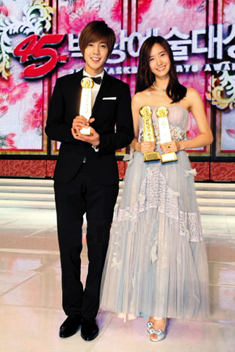 頒獎典禮一開始,李民浩就毫無懸念地獲得電視類男子新人獎,F(xiàn)4的其他三名成員都起身祝賀他。而金賢重所在的組合SS501在頒獎禮上獻唱《花樣男子》主題曲《因為我太傻》以及新專輯主打歌《U R Man》時,現(xiàn)場掀起了高潮。此外,最近憑借新歌《Gee》在歌謠界獲得巨大成功的“少女時代”組合也是當(dāng)天的人氣王,當(dāng)成員之一的允兒與金賢重一起獲得電視類人氣獎時,現(xiàn)場粉絲情緒越發(fā)高漲。金賢重領(lǐng)獎時還大吼:“感謝你們!”他表示,從歌手跨界做演員,雖然很累但是遇到了好作品,覺得十分幸運。