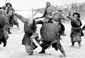 趙薇在片中飾演古代巾幗英雄花木蘭,裝備重20來斤。