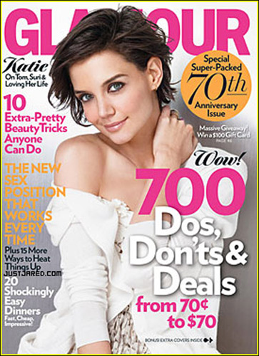 凱蒂·赫爾姆斯最近的人氣也是急升,又有了那么可愛的寶寶,看來以后的曝光率也會很多吧。這次《Glamour 》4月號雜志封面就請來了阿湯嫂凱蒂·赫爾姆斯,據(jù)悉這本雜志創(chuàng)刊70周年,相信可以證明凱蒂·赫爾姆斯的地位了。