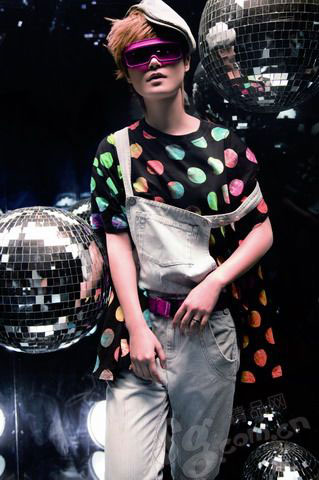 復(fù)古的條紋西服借鑒了Tuxdo的元素,像踏著鼓點(diǎn)、漫不經(jīng)心的爵士舞伶;不規(guī)則的圓點(diǎn)襯衫搭配金屬太陽(yáng)鏡,轉(zhuǎn)眼間搖身一變成了Disco舞場(chǎng)里的搶眼明星;簡(jiǎn)單的T恤與緊質(zhì)的運(yùn)動(dòng)褲,則仿佛小巷里熱愛(ài)復(fù)古舞步的搖擺小青年。