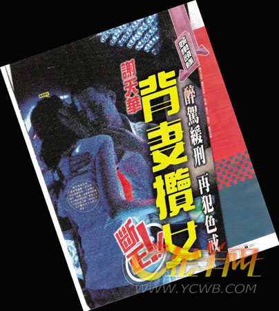 3月11日,因醉酒駕駛謝天華出庭接受判決,最后法官裁定罪名成立,判監(jiān)六星期,緩刑一年,停牌18個(gè)月。判刑前,謝天華曾帶著太太Tina去廟里求神庇祐,判刑日又與太太十指緊扣上庭。不過,據(jù)昨日出版的香港某雜志報(bào)道,獲得賢內(nèi)助無限支持的謝天華表面上擺出好男人的模樣,夜晚則背著妻子去夜店泡女孩子。