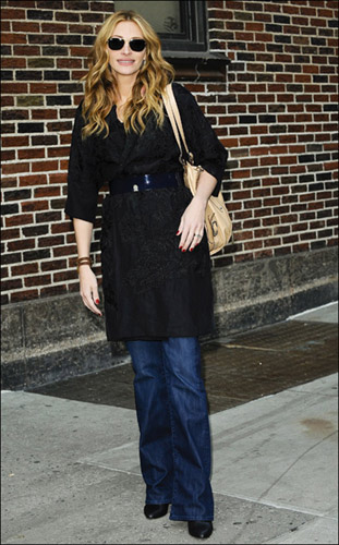 朱莉婭·羅伯茨的成熟優(yōu)雅氣質(zhì)實在是太濃厚了。前日(3月18日)結(jié)束了自己電影宣傳的朱莉婭·羅伯茨身穿黑色風衣配深色喇叭腿牛仔褲,寬款腰帶,黑色墨鏡金色齊肩短發(fā),實在是太迷人了。
