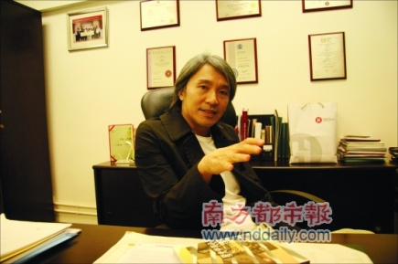 25日晚上九點(diǎn)鐘在寫字樓找到星爺。是他約在這個(gè)地點(diǎn)見面的,他和同事開會(huì)還沒結(jié)束,但為了這次是非,不得不見一見記者。當(dāng)記者在他的辦公室見到他時(shí),星爺一面倦容,滿面須根,問他是否受到打擊,情緒落寞,不修邊幅?
