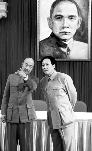 10點30分,正式拍攝開始。上午的第一場戲是張國立扮演的蔣介石和唐國強扮演的毛澤東,在眾多國民黨高官的掌聲中步入晚宴現(xiàn)場。兩人站停在長桌前的時候,眾人舉杯。一位演員叫道:“蔣委員長說,讓我們?yōu)榱撕推,干杯!庇谑潜娙嗽谧h論聲中舉起手中的紅酒。張國立對導(dǎo)演的要求言聽計從,完全沒有之前所傳的“戲霸”模樣。拍攝間隙回到休息室里,張國立放松了很多,也不介意記者的鏡頭和頻頻亮起的閃光燈。他談到自己在前幾天的拍攝中發(fā)了幾天高燒,足足燒到了39℃,把眼睛也給燒壞了!爱(dāng)時我媳婦兒來看我,我迷迷糊糊一睜眼,嚇了一跳,喲,我怎么有倆媳婦兒啊!”原來張國立的右眼在高燒時不能轉(zhuǎn)動,導(dǎo)致看東西有重影。直到醫(yī)生給他打了很多激素,癥狀才逐漸減輕。張國立苦笑著回憶說:“當(dāng)時馮小剛還和我開玩笑。他說,導(dǎo)演應(yīng)該在那個時候找我談片酬哇,看什么都是雙份兒的。”