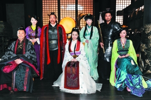 臧金生飾演的秦始皇和李易祥飾演的劉邦兩個(gè)皇帝在臺上見面,相互之間特別客氣。