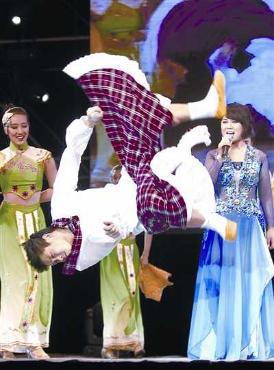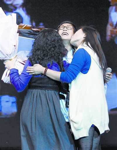 小沈陽人氣非常之高,現(xiàn)場上座率達到9成,連兩側(cè)看不到舞臺的地方都坐滿了人。主辦方透露,小沈陽的票出了8成之多,這在以往實屬罕見。大部分的觀眾都沖著小沈陽而來,前面1個半小時的表演里,大家雖然笑是笑,但是只有小沈陽走到舞臺上時,全場氣氛才為之沸騰。有粉絲上臺去獻花、強吻小沈陽,這可都是別的演員享受不到的待遇哦!老實說,小沈陽表演的確很賣力,不管是吼《死了都要愛》還是唱《大!飞踔潦潜硌荨睹餍桥c粉絲》的段落,但是在側(cè)面觀看小沈陽的表情時,記者幾次都發(fā)現(xiàn)他在拼命的眨眼睛,似乎要趕走隨時而來的睡意。