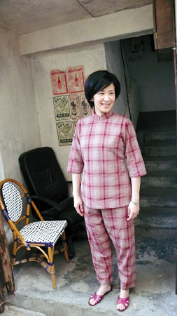 吳君如則比較顯眼,她穿著一身紅格子老式服裝,頭發(fā)是特意粘的假發(fā),很茂盛地搭在額前。她的腳上跟任達(dá)華一樣蹬著塑料拖鞋,身材看上去略有些發(fā)福。吳君如的妝化得挺濃艷,看上去跟環(huán)境有點(diǎn)不搭調(diào)。任達(dá)華卻十分自在,到處跟人聊天,演他們兒子的小演員———在《大搜查》里演陳奕迅兒子的鐘紹圖遠(yuǎn)遠(yuǎn)跑過(guò)去,很響亮地喊他“老竇”,他也很從容地回了一聲“哎”。