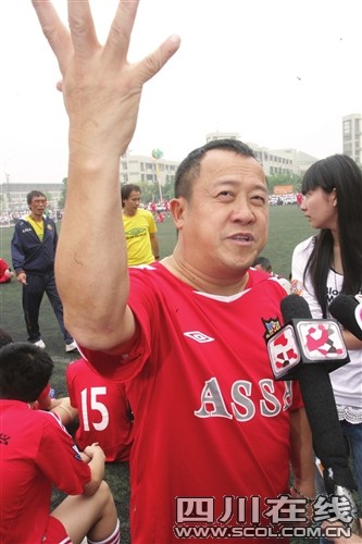 昨日下午,位于地震重災區(qū)的什邡中學體育場熱鬧非凡。一場由譚詠麟率領的香港明星足球隊,與孫楠率領的夢舟明星足球隊之間的足球賽正式開鑼。曾志偉、成奎安、羅家英、陳百祥、何家勁、洪金寶之子洪天明以及白巖松、景崗山,羽泉、文章、吳京、黃格選、陶偉等30多個影視歌明星輪番上陣,爭搶激烈。譚詠麟、曾志偉帶頭當老頑童玩得盡興,明星們還在比賽間隙穿插文藝表演,讓觀眾無比激動。