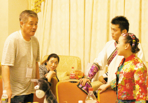 很少能看到趙本山和小沈陽同臺表演,這次海南之行的首場演出,恐怕也是“劉老根大舞臺笑轉2009”全國巡演中唯一一場本山師徒同臺的表演,因為觀眾是參加博鰲論壇的國際政要和經(jīng)濟專家。在演出后臺,本山首先演練了一遍即將在舞臺上表演的“吹拉彈唱”,隨后就開始對自己的徒弟一一評點。別看徒弟們個個在舞臺上精神抖擻,但在面對如此大場面時不免有些緊張,紛紛對師父說出自己的顧慮!皠e緊張,就當是在咱們沈陽中街基地演了!”“你這個口我看可以使,沒關系,出了事我兜著!薄澳阒虚g的那一段就不要加了,不好,不文雅。”面對徒弟,本山嚴肅認真地對他們的表演提出要求。因為對徒弟的表演和絕活爛熟于心,本山三言兩語就指出了他們的不足,并且提出了建議。有了他的點撥,徒弟們個個信心十足地走上了舞臺……