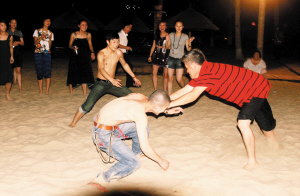 本山的好人緣在圈里是公認的,張藝謀曾在記者面前評價趙本山是“絕對好人”。在徒弟面前,趙本山同樣也是他們的朋友和哥們兒。在海南巡演期間,記者感受到了本山和徒弟的親密無間,在飯桌上,徒弟們和本山推杯換盞就像是朋友。此時,本山也沒有平時的架子,他會和大家談笑風生,整個演出團隊打成一片。無論是誰,只要有演出、生活的問題,本山肯定耐心勸慰,讓他們拋開顧慮。興致來了,本山還會不顧年齡的差異和徒弟們在沙灘上摔上幾跤。男孩子可以和師父摔跤,但女孩子都希望與本山合影,面對著一望無際的大海,女演員和舞蹈隊的姑娘們提出了與本山合影的要求。本山對孩子們的要求不會拒絕,他甚至會主動弓下身子遷就個子稍矮的女孩子。當十多張照片拍完之后,記者明顯看到本山有了疲憊的跡象,于是提出“讓趙老師歇會兒再拍吧”,但本山堅持和每個演員照完!半y得有這樣的機會和大伙玩,都是自己人!陛p描淡寫的一句話,迅速拉近了自己和演員們的關系。