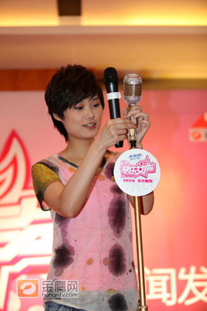 今日上午10點半,“2009快樂女聲”在北京舉行了發(fā)布會。05屆超女冠軍、擁有超高人氣的李宇春到場助陣,并成為了本次快女的形象代言人。現(xiàn)場她更是送上天價“金麥”為09快女加油。