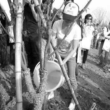 5月5日,世博會(huì)“綠色出行大使”周迅與世博局領(lǐng)導(dǎo)、媒體朋友赴上海辰山植物園,一同種下了世博綠色出行林。同時(shí),她還出資捐贈(zèng)了233棵樹(shù),成為世博林首個(gè)捐贈(zèng)者。