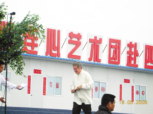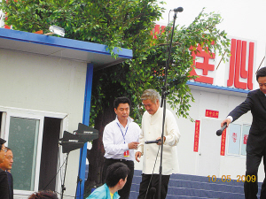 雖然本次“心連心”藝術(shù)團(tuán)在明星陣容上創(chuàng)下了空前的紀(jì)錄,但是劇組在籌備過(guò)程中卻是對(duì)成本極盡節(jié)約。昨日早上6點(diǎn)半,記者提前來(lái)到演出現(xiàn)場(chǎng),碩大一個(gè)舞臺(tái)就搭建在板房區(qū)的一個(gè)空地上,舞臺(tái)背景也是就地取材,由幾間貼著大紅對(duì)聯(lián)的板房組成,但看著特別的溫暖。