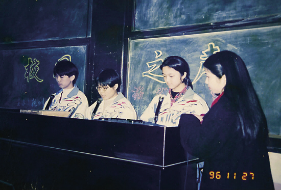 湯唯是班長(zhǎng),又是語文課代表,藝術(shù)天賦很早就表現(xiàn)出來了。1996年11月27日,湯唯與另外兩名同學(xué)代表學(xué)校參加校園之聲職高學(xué)生播音比賽,還獲了獎(jiǎng)!八芟矚g各種文藝方面的活動(dòng),每次的主題班會(huì)都是湯唯與副班長(zhǎng)一起主持策劃的!闭f到這班主任肖老師很開心,“只要有她在,我什么都不用操心,只要坐在底下聽就好。她是個(gè)很用功的學(xué)生。湯唯普通話說得很好,學(xué)校的活動(dòng)很多都是她主持的!