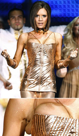 33歲的維多利亞穿上Roberto Cavalli金色緊身裝非常搶眼,可是也因?yàn)樘o,在托高胸部時(shí),右邊腋下竟驚現(xiàn)離奇贅肉。之前據(jù)傳,維多利亞在此次巡回演唱會(huì)前,因?yàn)榕滦夭刻罂赡懿簧骶痛汗馔庑埂⒂绊懕硌,所以特別將胸部填充物取出。不過也有消息稱,維多利亞再度有喜,害怕隆胸填充物對胎兒有害,才將其取掉。