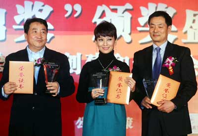 年底到處都在派送大獎,而2007年中國演藝名人公眾形象滿意度調(diào)查頒獎?wù)婵芍^包羅萬象,什么人都有,什么獎都頒。曲藝的姜昆,演員的王剛、陳建斌等,戲曲的韓再芬、胡文閣,舞蹈的孫杰和朱妍,港臺的趙雅芝、蘇有朋,唱歌的閻維文、譚晶,別說記者們暈,連現(xiàn)場的明星們都有點錯愕。