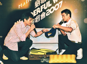 一連16場于紅館舉行的“劉德華Wonderful World演唱會2007”于上周六晚圓滿結(jié)束,情緒高漲的劉德華足足安哥了半小時,直至次日凌晨才完場,超時罰款6位數(shù)字全不理會。期間劉德華收到大量鮮花和香檳,他立即開了幾支香檳射向觀眾,又開心得以香檳淋頭。安哥時當(dāng)劉德華唱到《沒有翅膀的天使》時,歌迷起哄要求他除衫,劉德華就幽默地說:“我拍的是《投名狀》,不是拍《色,戒》!