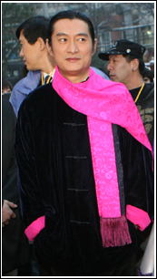 一條鮮艷的桃紅圍巾,一個(gè)扎在腦后的小辮子,身穿黑色絲綢中式對襟衣服的黃安,在西安的雪天里凍得瑟瑟發(fā)抖,但其明星派頭依舊十足。