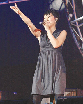 中新網(wǎng)1月21日電 林憶蓮自完成個(gè)唱后便甚少露面,前晚(19日)突然現(xiàn)身張震岳(阿岳)演唱會(huì)擔(dān)任嘉賓。一襲低胸性感晚裝,令她豐滿上圍表露無(wú)遺,同時(shí)表現(xiàn)出微隆的腹部,難免令人聯(lián)想到再度有喜。