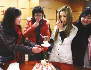 自超女比賽結(jié)束后,何潔的話題新聞就源源不斷:頒獎(jiǎng)禮上摔倒、跪著接受采訪、機(jī)場昏倒、出車禍……儼然成了“話題女王”。昨日下午,她作客本報(bào)與山城“盒飯”歡聚一堂,坦然表示歡迎大家問“負(fù)面新聞”,還親手為“盒飯”切蛋糕。