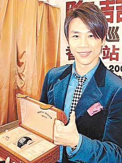 前天,陶喆出席了“1,2,3!我們都是木頭人”世界巡回演唱會(huì)香港站的記者會(huì),會(huì)上獲歌迷送上“樂(lè)壇教父”牌匾,又獲贊助商贈(zèng)送一只價(jià)值10萬(wàn)元的名牌腕表,懂多國(guó)語(yǔ)言的陶喆更將手表型號(hào)的西班牙文當(dāng)場(chǎng)翻譯出來(lái),原來(lái)是“征服者”的意思。