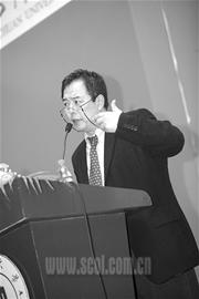9點30分,閃光燈不停閃爍,張鐵林剛一出現(xiàn),歡呼聲、掌聲立即爆響。張鐵林身穿一套深色西裝,扎著領(lǐng)帶,戴著一副金邊眼鏡,地道的學者氣派。一進會場就遭遇學生、媒體的圍堵。