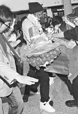 李準(zhǔn)基旋風(fēng)襲港粉絲緊逼 機(jī)場(chǎng)掉鞋光腳前行(圖)