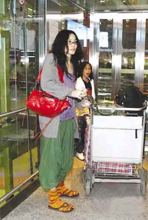 天后王菲所到之處,必定擁躉無數(shù)。上月29日晚上,王菲母女回到北京,由于不熟機場新大樓路線,在三號航站樓里迷失。當晚王菲出現(xiàn)在機場出口,穿著毛襪夾人字拖,一條綠色燈籠褲,素裝簡顏,這身行頭只有穿在王菲身上才會被稱作時尚。當接機的人看到王菲的時候,充滿了熱情,并且有人開始尖叫,接著就是掏手機,按快門……閃光燈不停閃著,王菲沒有閃躲,也沒有對著別人微笑,只是向著離自己最近的一部電梯走去。而身經(jīng)百戰(zhàn)的竇靖童則心領(lǐng)神會快步奔向電梯,在最后一秒按住“下行鍵”,招呼推著行李的母親上電梯。