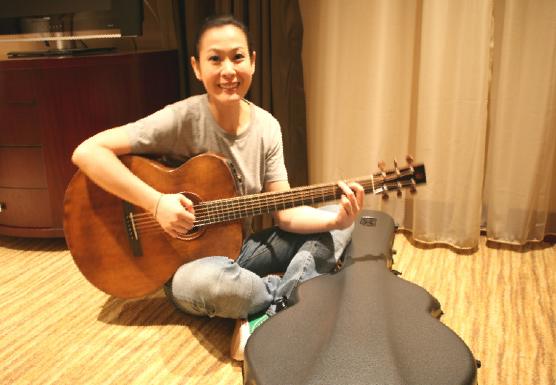 拿到這把專屬吉他,奶茶從演出結(jié)束后就急著奔回飯店,才剛拆了頭飾就迫不及待抱著吉他猛彈,直到盡興才肯梳妝赴慶功宴場(chǎng)地。隔天從成都搭機(jī)返臺(tái),更在機(jī)場(chǎng)上演“打包兒子秀”,小心翼翼地叮嚀同事買了4個(gè)機(jī)場(chǎng)專用袋、8條尼龍繩,一層層把吉他的頭部、腰部和臀部通通緊緊包住,儼然像托運(yùn)“兒子”一樣寶貝。沒(méi)想到一番苦心還是出了狀況,當(dāng)她到了臺(tái)灣才發(fā)現(xiàn)所有行李沒(méi)回來(lái),她急忙尋找“吉他兒子”,好在沒(méi)漏掉,她一臉慶幸說(shuō):“行李掉了沒(méi)差,但這把吉他是寶貝,絕不能有任何閃失!”