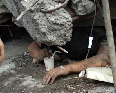《冷暖人生》以關(guān)注人性著稱,這一次他們也將透過新聞報(bào)道,更多地記錄那些災(zāi)難背后受難者的人生巨變,力圖展示整個(gè)的救援情況,并帶回去更多人性的故事。曉楠介紹說:“現(xiàn)在我們主要有幾個(gè)方向,比如說在都江堰,因?yàn)閺臑?zāi)區(qū)很多地方出來的人,是通過沖鋒舟被運(yùn)出來的,有很多親人在渡口上長時(shí)間的等待,看運(yùn)過來的人其中有沒有自己的親人,所以我們可能會制作一期節(jié)目就叫《渡口》。記錄那些人的漫長煎熬的等待,還原很多等來和沒有等來親人的故事。因?yàn)槲姨貏e想把他們還原成比較鮮活的生命,他們原來的夢想和生命進(jìn)程是什么,他們的喜怒哀樂突然間戛然而止。對他們來講,生命的感覺,包括對他們親人來講,可能我們更能理解,這次災(zāi)難在人的身上所留下的巨痛。同時(shí),也是它所折射出人的力量是怎么樣的。另外,我們可能還會去做一些學(xué)校的采寫,用我們的視角去還原原來的一個(gè)班。總之,還是去記錄人,我們的目的是尋找人的故事,去尋找人生命的故事。當(dāng)然,還有救助的那些人,在這一時(shí)刻他們和素不相識人的命運(yùn)連在一起!