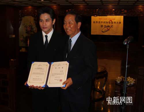 副會(huì)李曉林表示:很榮幸邀請(qǐng)到韓國(guó)著名歌星, “全民舞王”—— 劉承俊先生擔(dān)當(dāng)“2008年國(guó)際宣傳大使”。在宣讀了“2008國(guó)際宣傳大使”職責(zé)和義務(wù)后,邀請(qǐng)劉承俊先生共同簽署委任書(shū)。李曉林還說(shuō):第二屆世界“洗手間”協(xié)會(huì)總體大會(huì)將于明年在我國(guó)召開(kāi)。計(jì)劃成陸續(xù)向中國(guó)農(nóng)村廣大鄉(xiāng)村、城鎮(zhèn)等地區(qū),投入具有世界級(jí)標(biāo)準(zhǔn)的洗手間設(shè)施和文化保潔用品。