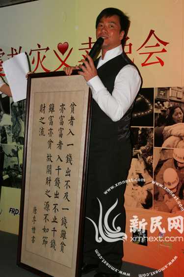 不過,在當晚的抗震救災義賣晚會上,唐季禮笑得合不攏嘴。他的兩幅書法被拍到了18萬7千元。唐季禮表示,大家都想為災區(qū)做點事情,希望這次的義賣可以得到更多的善款支援災區(qū)。