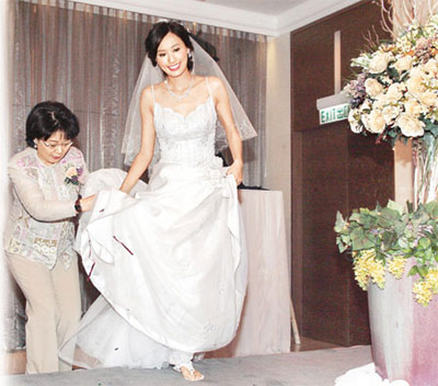 中新網(wǎng)5月29日電 據(jù)香港太陽報(bào)報(bào)道,陳法拉日前為新劇《溏心風(fēng)暴之家好月圓》拍攝一場結(jié)婚戲,身著純白婚紗的她,身姿優(yōu)美,高貴典雅。