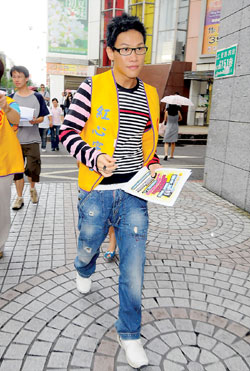 中新網(wǎng)6月11日電 港星蘇永康昨日來臺(tái)灣,穿起紅心字會(huì)的背心走上街頭,邀請(qǐng)民眾一起做公益志工,并親切地和路人擁抱。據(jù)臺(tái)灣《中國時(shí)報(bào)》報(bào)道,蘇永康在2005年成立“永康慈善基金”,每年捐出總收入的10%、約156萬元從事公益。他去年在大陸湖南資助蓋小學(xué),以母親名字潘燕嫦命名,他則擔(dān)任榮譽(yù)校長。他開心地表示,以他父親蘇才為名的學(xué)校預(yù)計(jì)明年9月蓋好,“我希望每年都能建一所學(xué)校!