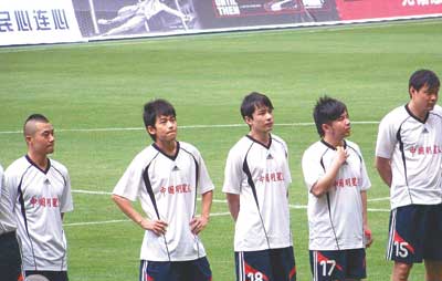 “中國(guó)明星足球隊(duì)VS好男兒足球隊(duì)公益對(duì)抗賽”日前在上海開戰(zhàn),蘇醒作為中國(guó)明星足球隊(duì)的代表參賽并獻(xiàn)唱了他為抗震救災(zāi)原創(chuàng)的歌曲《我們?cè)谝黄稹贰#ㄓ浾咄醮篪Q)