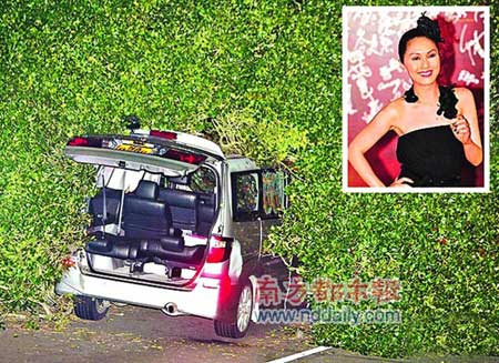 楊千嬅乘坐的私家車被一棵15米高的大樹砸中,而人卻沒事,非常幸運(yùn)。