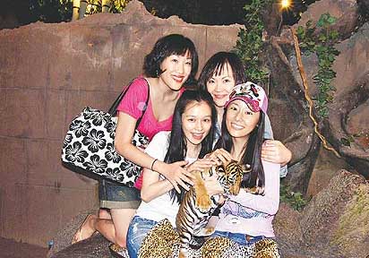 徐若瑄(前排左)和林心如(前排右)抱著小老虎。