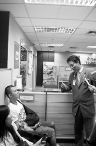 事情轉(zhuǎn)機(jī)出現(xiàn)在晚上10:30,一位臨時(shí)從免稅店請(qǐng)來(lái)的華人翻譯擔(dān)任了李亞鵬方面的發(fā)言人,他對(duì)兩位被打香港記者表示,李亞鵬可以接受“互相道歉”。他說(shuō):“他動(dòng)手打人當(dāng)然不對(duì),但是你們那么近去拍他的小女兒也不好。他有大錯(cuò),你們有小錯(cuò)”。對(duì)此提議,兩位香港記者先表示不可以接受,這位發(fā)言人隨即嚴(yán)肅地表示,李亞鵬也會(huì)走法律程序追究他們跟拍他小女兒的責(zé)任,“互相道歉”對(duì)雙方來(lái)說(shuō)都好。兩名被打香港記者表示要考慮一下,再?zèng)Q定是否接受。